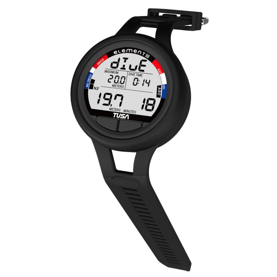 The TUSA IQ1101 Element III Dive Computer is a compact, wrist-mounted device designed for recreational and