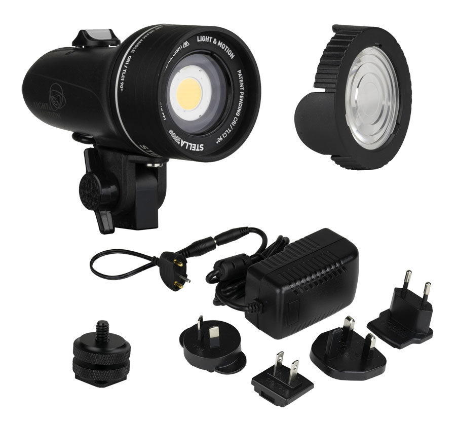 ![]() Featuring: • Boost mode allows the light to run continuously at 2500 lumens in water plus it can provide a temporary boost in air for 30+/- seconds enabling the perfect shot. • Integrated Li-ion battery: Run completely cord free for 45 to 415 minutes and because the battery is integrated into the device (permissible in both checked and carry-on luggage). • Multiple Power Options: For longer shoots topside simply plug the CL into any AC or DC power source including Gold-mount/V-mount battery “bricks” (with optional DTap cable). • 120° Native Beam Angle (90° UW): Output can be easily focused to 25° with the included snap-on Fresnel Modifier. • High Output COB “Chip on Board” LED: Eliminates the multi-shadow effect that can be a problem with panel-style light sources while also keeping the light’s footprint small. • Rugged Waterproof Construction: Designed to perform in the most challenging environments, the platform is waterproof to a depth of 100 meters (IP68 Rating) and tested to resist 1 meter impacts on concrete. In The Box: Stella CL 1000/2500UW Light, 25° Fresnel 50mm, YS Mount, 1/4-20 Adapter, Cold Shoe Mount, External Power Supply 12v 30W. Downloads: