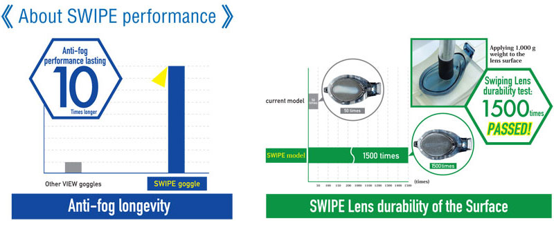 Compared to other goggles, the new SWIPE goggle anti-fog lasts 10 times longer. |